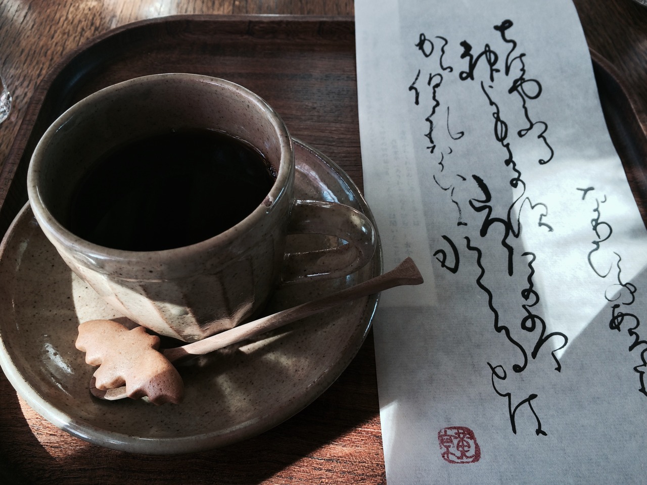真如堂から歩いて5分くらい、ゆっくりお茶をしました。カフェの窓からは大文字が見えます。カフェはシナモンの香りが漂いほっこり致します。コーヒーや紅茶にはこうもりクッキーが一つついてました。あと、ぜんざいやチョコケーキなどもありました。