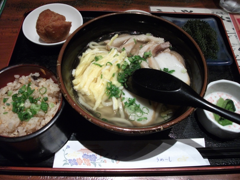 沖縄で最初の食事は国際通りを歩いていて外に出ていたメニューを見て沖縄らしい料理がお得なセットになっていたこの店にしてみました。八重山そば、炊き込みご飯のジューシー、海ブドウ、サーターアンダギー、漬物で961円ですが味は値段相当でした。