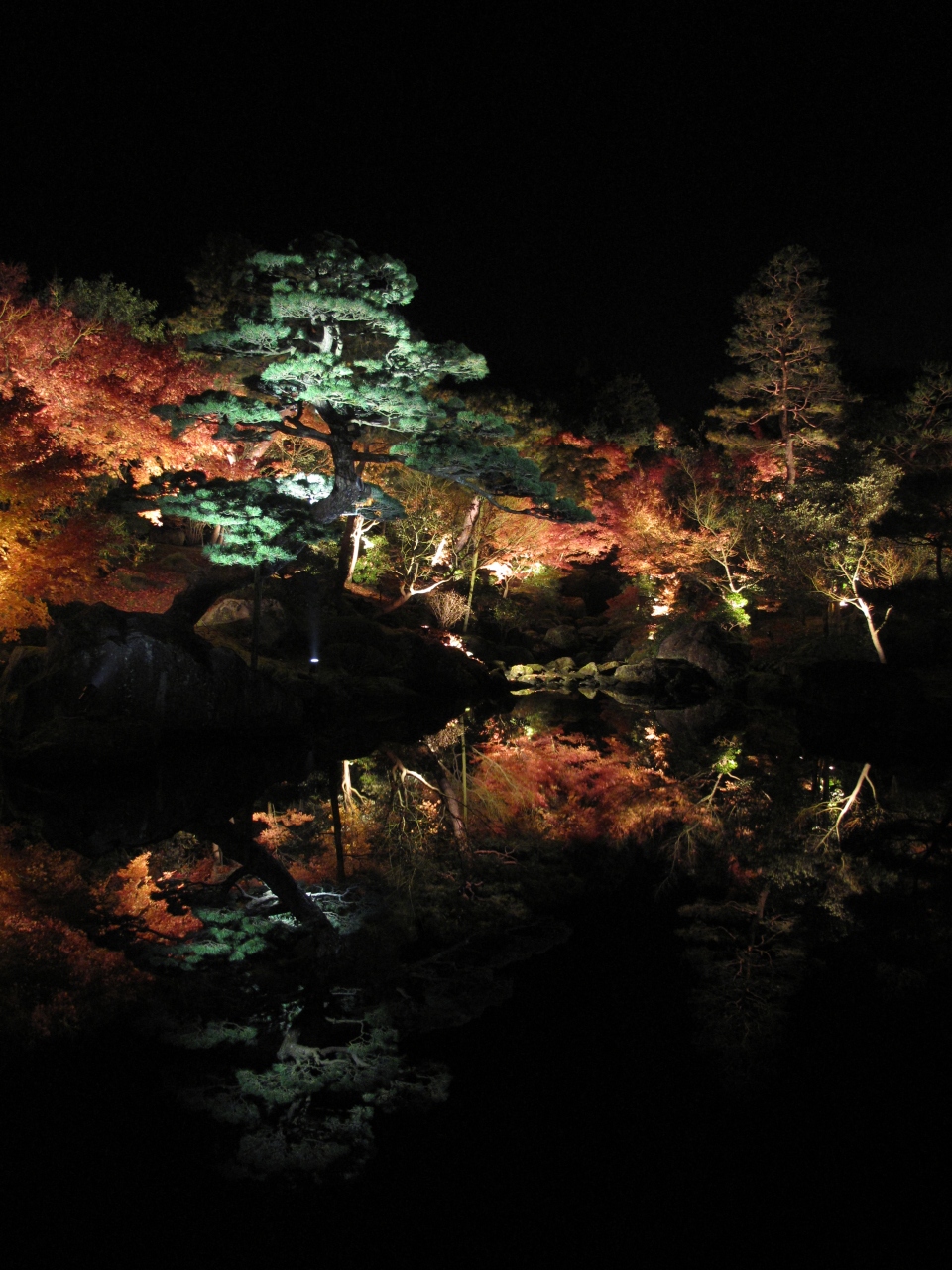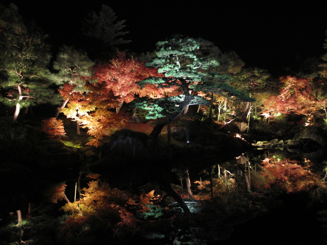 仕事を終えた夜でも美しい紅葉を楽しむことができます。