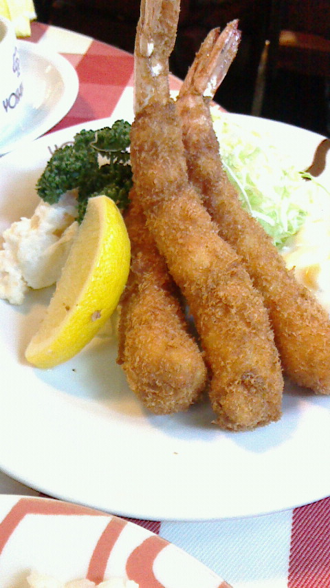メニューも豊富で迷った末に洋食の定番オムライスと海老フライを注文しました。お店のおススメはステーキやシチューらしいです。