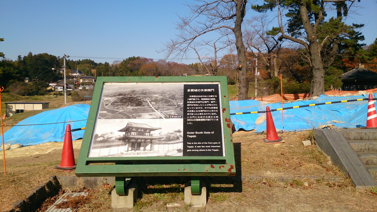 国府多賀城から、館前遺跡、多賀城碑を見て、政庁跡まで歩きました。付近は住宅地ののどかな風景が広がります。観光用の整備が不十分ですが、逆に遺跡を楽しむことができます。歩き方は駅前の観光案内のおじいさんが丁寧に教えてくれました。特に多賀城碑には平城京からの距離がしっかり明記されていて、ここに日本の支配が及んでいたことがわかります。