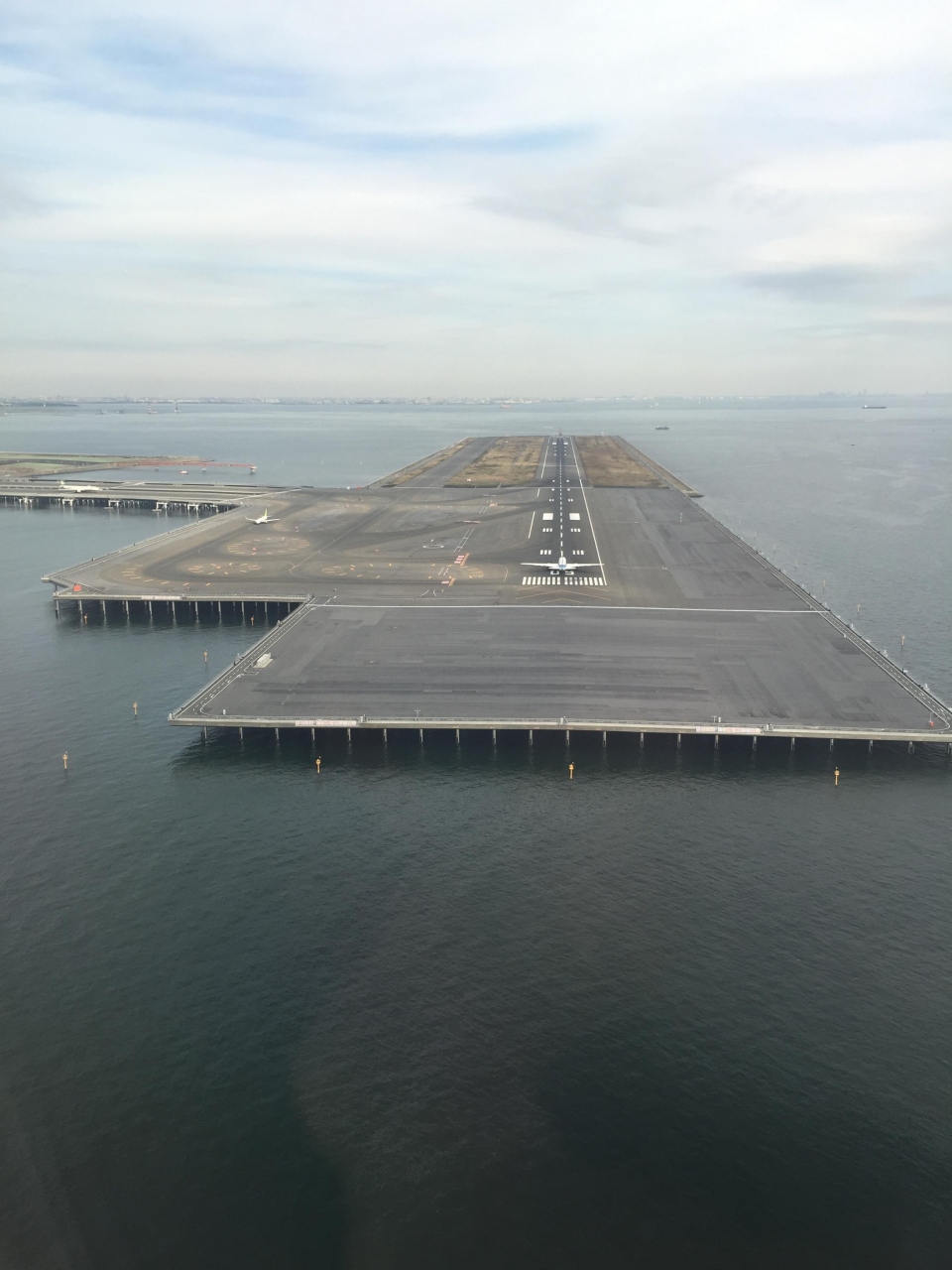 いつも思うのは、離発着時、飛行機が動きだしてから滑走路までが遠いこと。