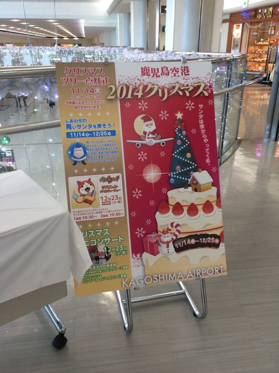 鹿児島空港では、クリスマス企画として、「幸せの青いサンタを探そう!!」が行われていました。クリスマスツリーに飾られた青いサンタの数を当てるものですが、空港内で使った2000円のレシートを貼り付けて応募しなければなりません。クレジットカードで使用したレシートは持ち帰ることにしているので、応募できませんでした。