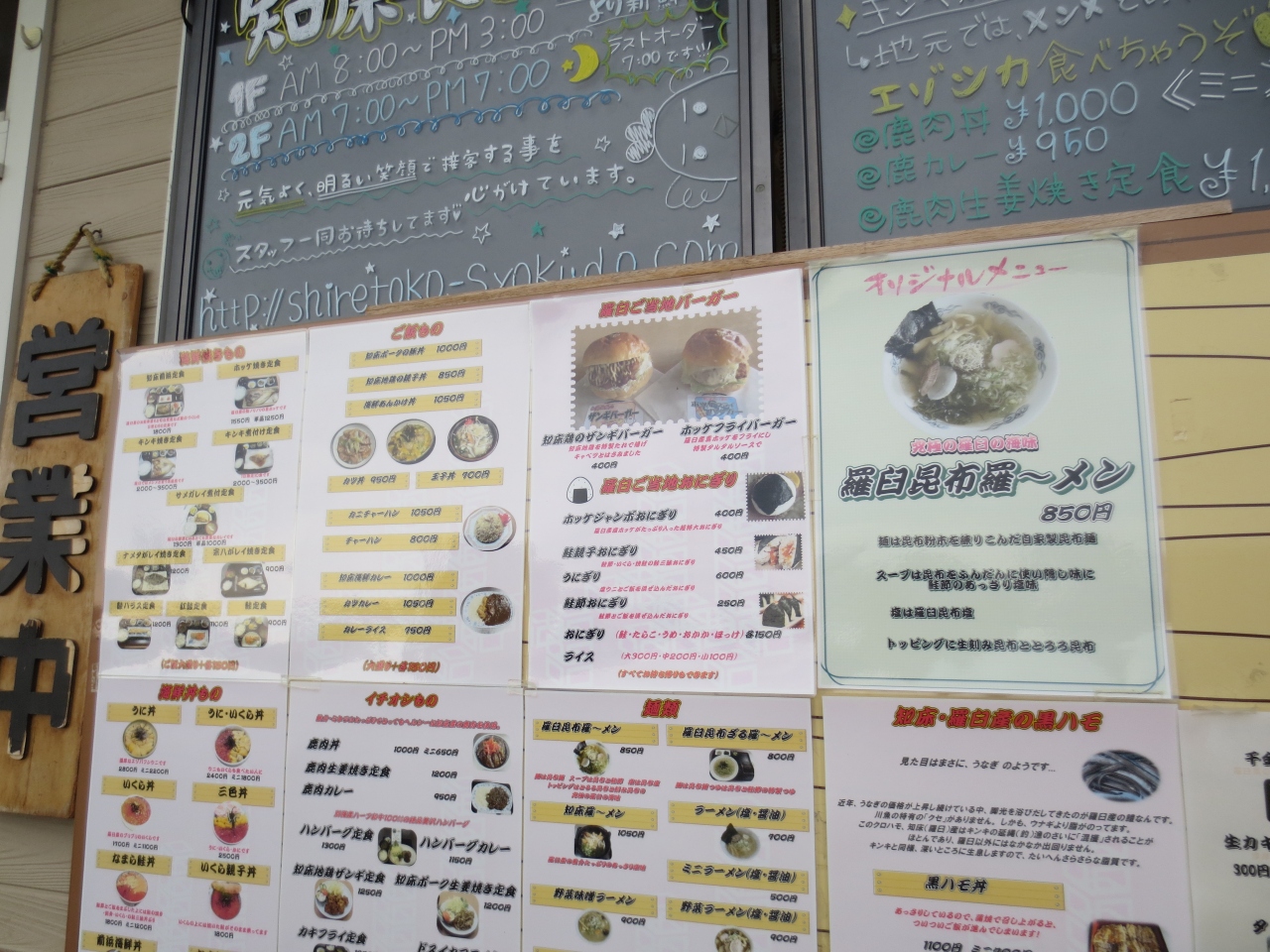 海鮮市場~観光案内所~道の駅お土産店のような連なり方で一つの建物に集約されていました。どの建物からでも入室可能で中でも自由に出入りできます。お土産物の品数は豊富で、お菓子系から生魚までとりそろえてあり、特に人気が羅臼昆布でした。早速お土産としてゲットして帰りました。また、二階にはレストランや隣には売店もあります。
