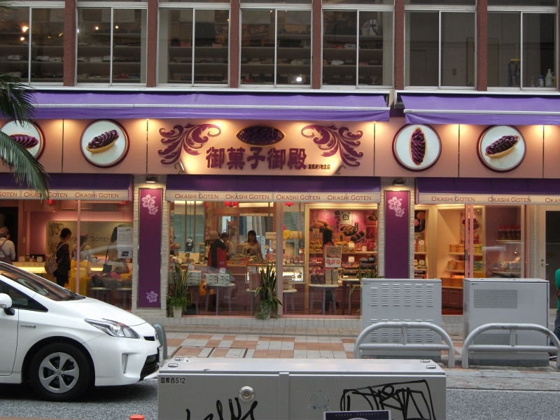 国際通りにあるお店。同じ御菓子御殿でもド派手な首里城風の店舗と比べると随分かわいらしい雰囲気の外観です。派手さがあまりないせいか客数がぜんぜん違います。御菓子御殿の商品をゆっくりと買い物したい人にはこちらの店舗がおすすめです。