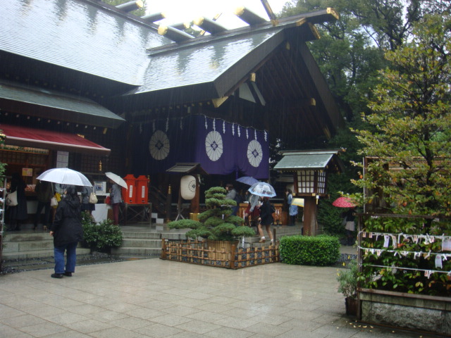 浅草の今戸神社と並び若い女性の参拝客が多い神社です。東京大神宮がなぜこれほど若い女性の人気を集めているのかというと、日本で初めて神前結婚式が挙げられた神社なので、縁結びに絶大なご利益があるという噂があるからだそうです。当日は雨でしたが、それでも30人程度は並んでおり、まるで初もうでのようです。その中でおじさんが並ぶのも恥ずかしいものです。おみくじも恋みくじ、血液型みくじと様々、場所柄英文みくじもありました。