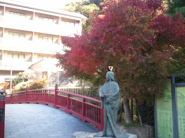 三宮から高速バスで有馬温泉について、バス停からすぐ近くにあるねね橋。2日前から急に冷え込んだおかげで紅葉が始まっており、ねね像が映えました。ウオーキングマップを見ると、ここがウオーキングのスタート地点となってます。