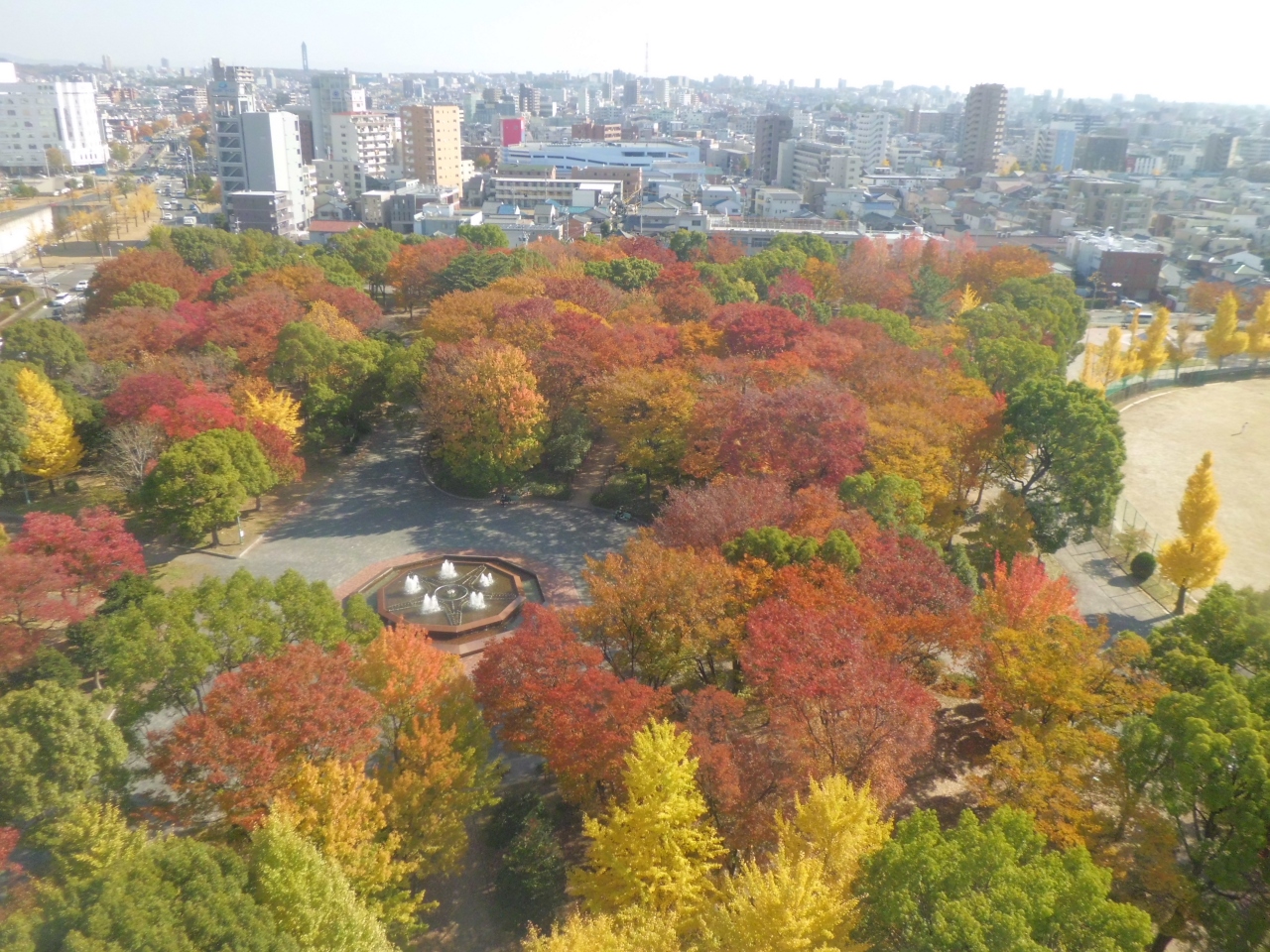 地下鉄桜通線の吹上駅から5分くらい、吹上公園の隣りにあります。駐車場は有料で、30分200円、打ち止めなしです。コンベンション施設で、この日はスノーボードの展示販売会が行われていました。9階は展望室となっていますが、普段はエレベーターホールしか空いていないようです。ちょうど吹上公園の紅葉がみられました。