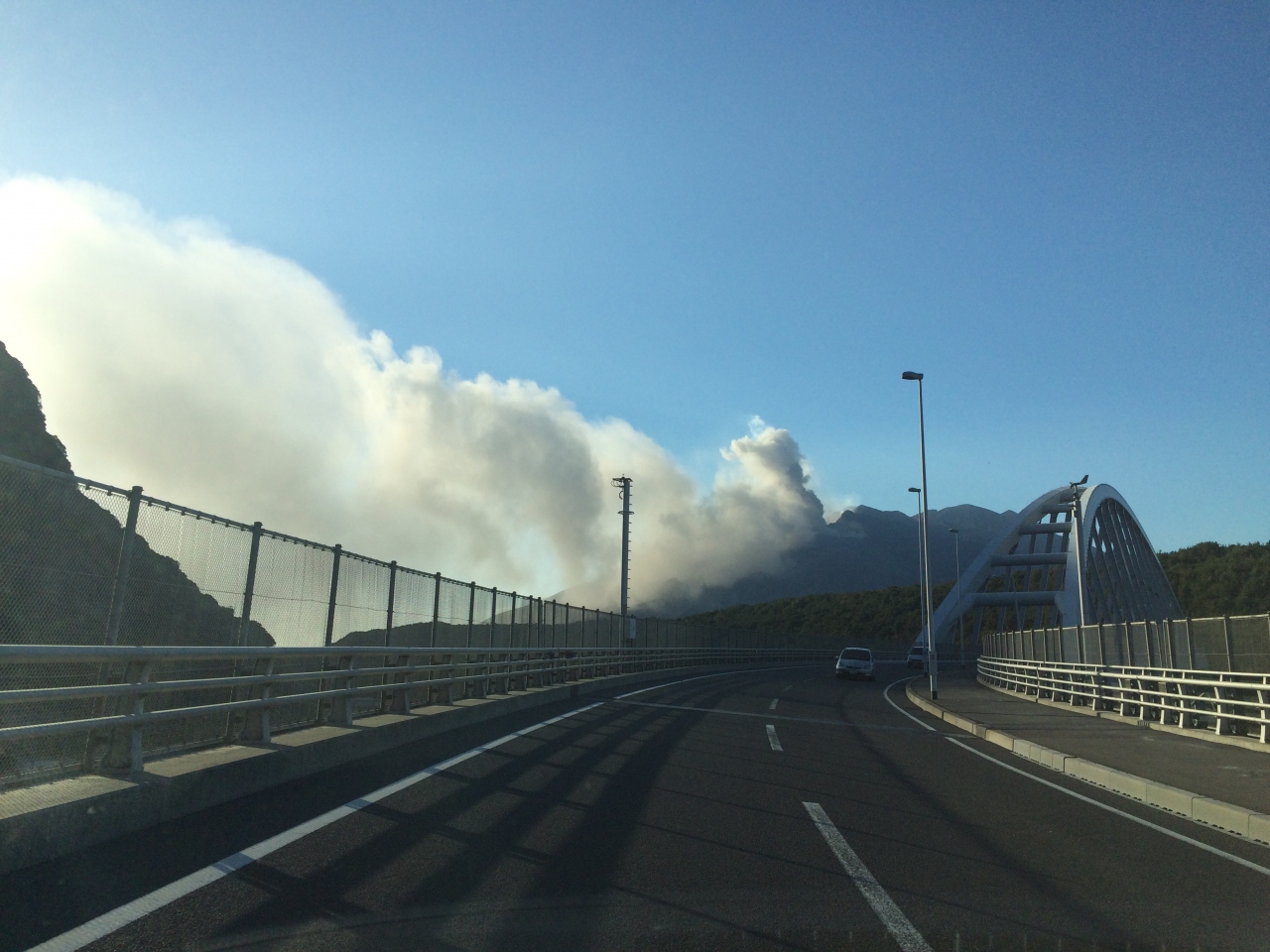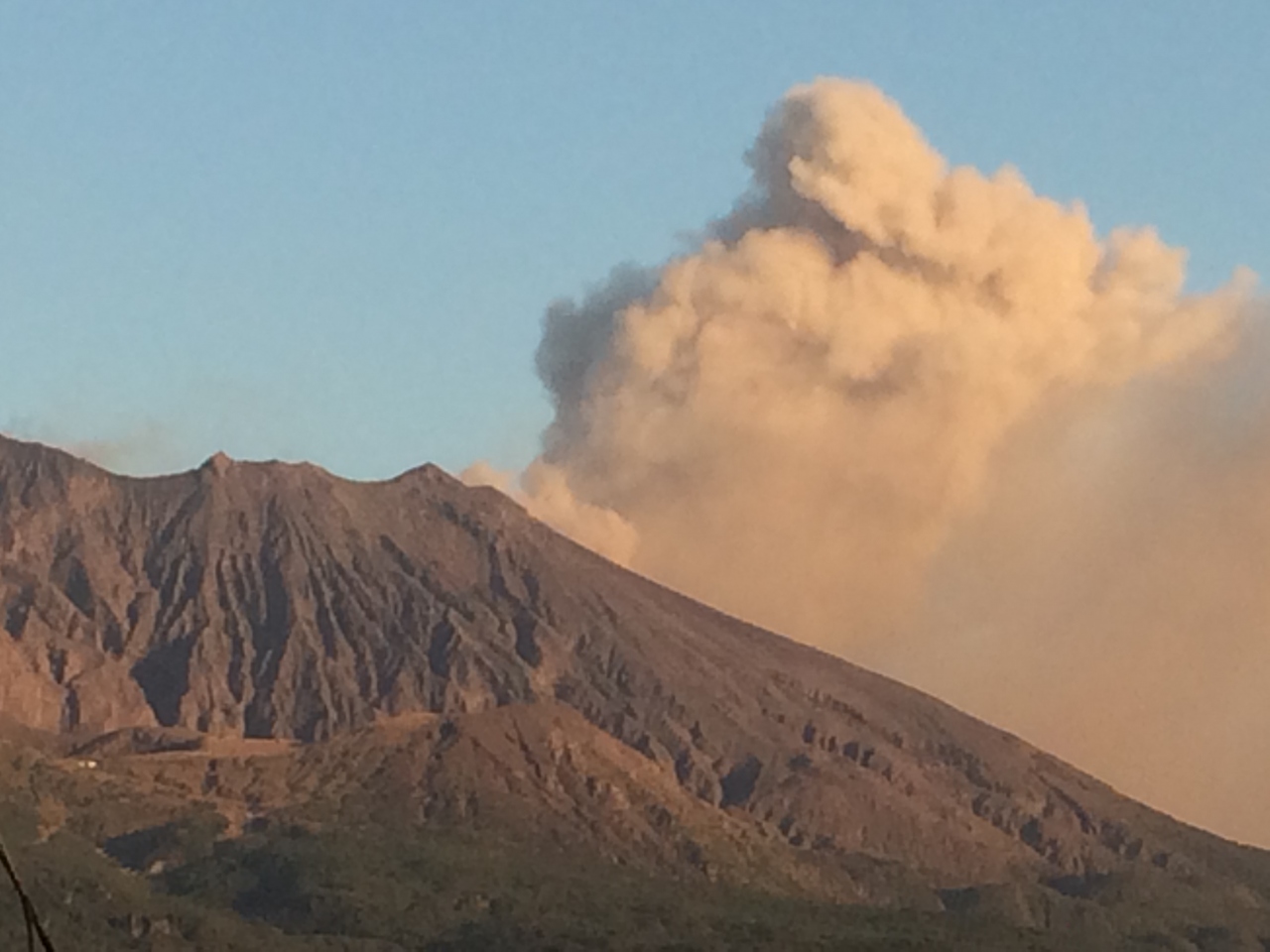 テレビ 雑誌からしか観た事なくて 初めて桜島の噴煙を見て これが毎日もくもくと出ている、 風向きによって町中が 車も真白! 匂いは感じなかったが 時には爆発音も聞こえてくる