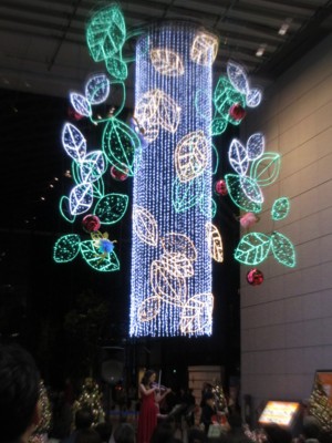 明治生命館隣の丸の内 マイプラザのクリスマスイルミネーションの下では