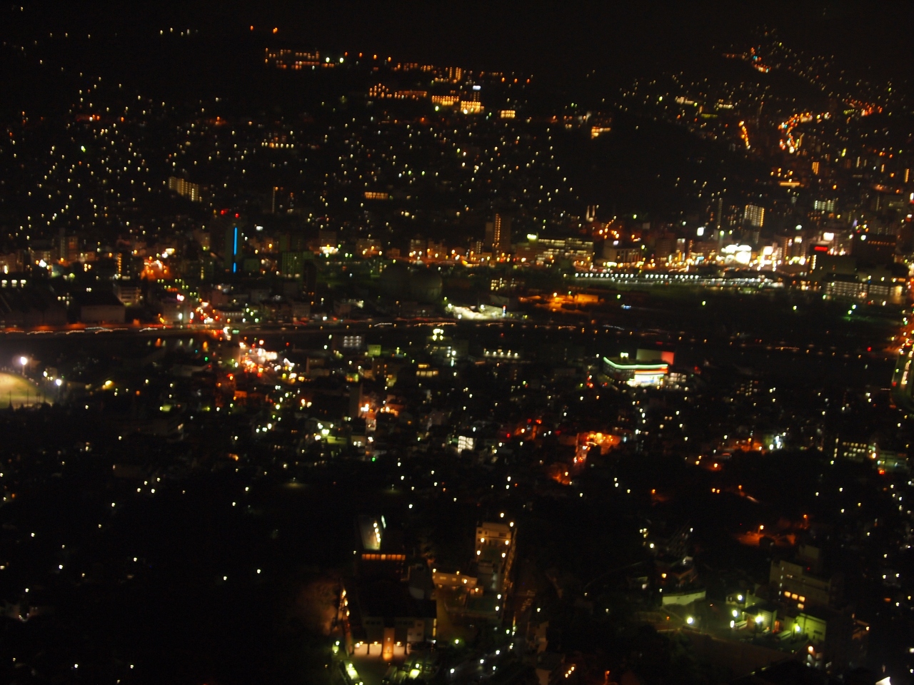 夜景ツアーのバスで、稲佐山展望台に登りました。港を囲むように斜面に広がる夜景が、とてもきれいでした。眼鏡橋やグラバー園などと同じように(?)、ここもハート探しです。途中の道すがらの夜景も良かったです。自分で運転していると、なかなか見られない光景ですから。