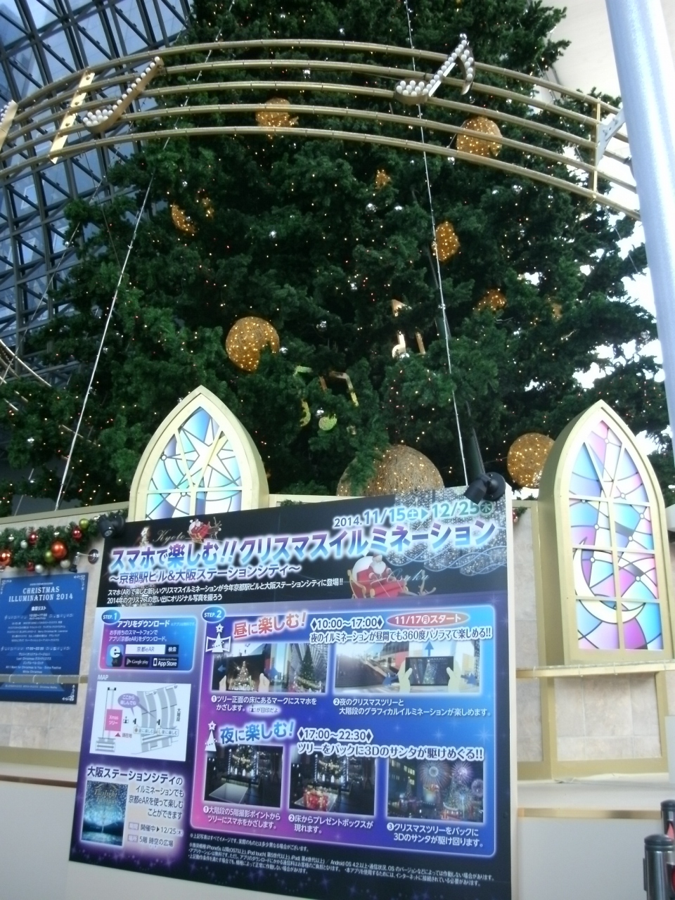 京都駅ビルの人気スポットである大階段の下に設置されるクリスマスツリーです。