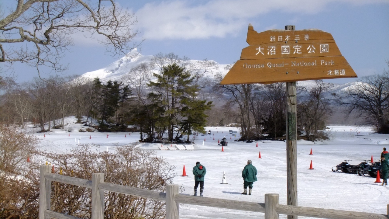 今回は3月に行ったので、大沼の湖面が凍っていて、スノーモービル体験ができるようになっていた。結構みんな挑戦しているようだ。以前夏に行ったときはきれいな風景と山々が印象意的だった。季節によってこんなに違うのはさすが北海道。