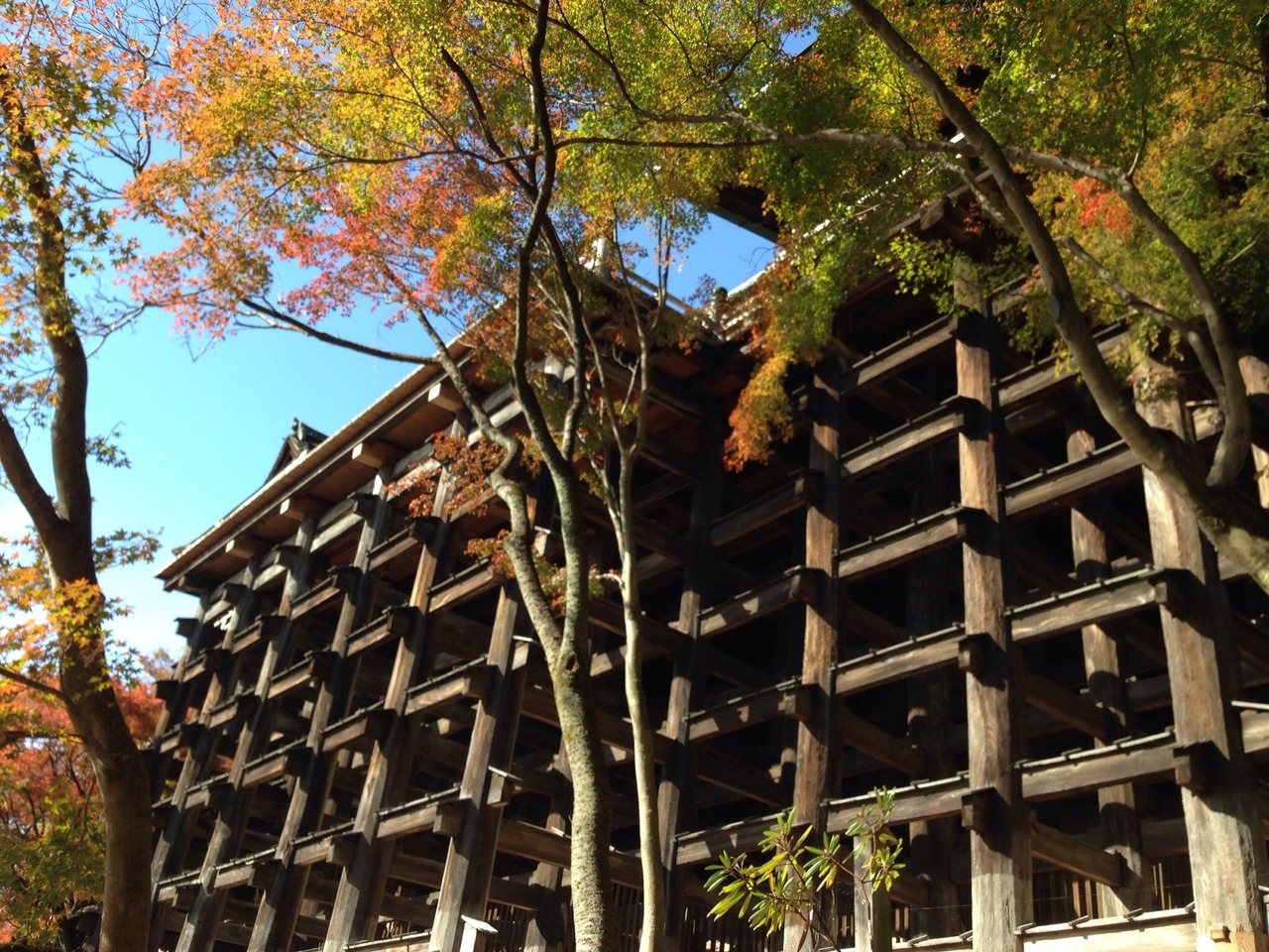 旅行会社のバス旅行で京都に。清水寺を楽しみにしていましたが、実際に行くと平日なのですが、修学旅行や外人で大賑わい。人を掻き分けて清水坂を登り朱色の山門が青空をバックに見えたときに、わぁっとなる。そして、本堂に入ると、仏像や調度品に歴史の重みを感じる。清水の舞台の建築様式の凄さと紅葉のコントラストの見事さ。日本の素晴らしさを実感します。