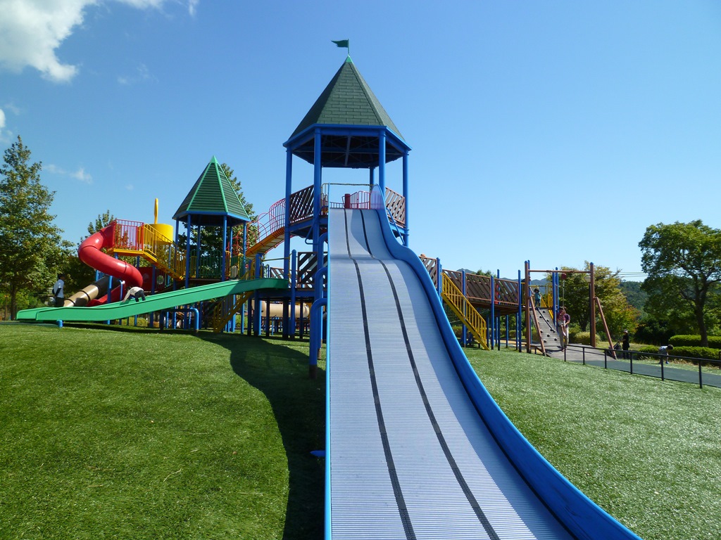 柳井の市内から車で20分くらい、フラワーランドの近くにある穴場的な公園です。見どころは何と言っても大きな滑り台。長さというより、幅の広さが圧巻です。大人も子供も楽しめる遊具になっています。その他芝生や運動施設もあってスポーツされる方にはいいところだと思います。