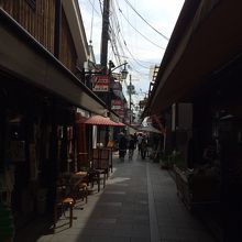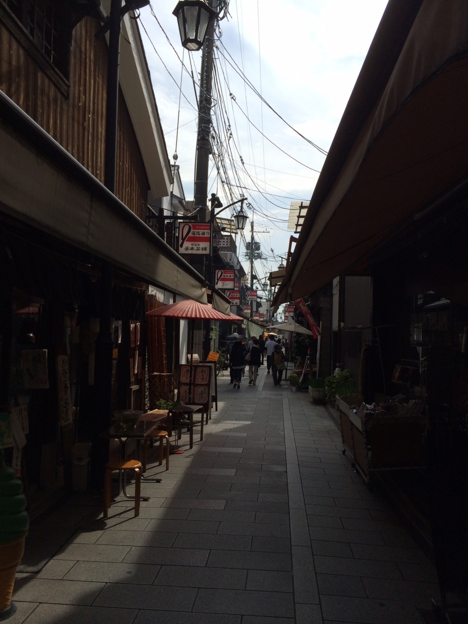 細い道沿いに、竜馬グッズのお店やお土産屋さんだけではなく、普通の八百屋(京野菜が安くて美味しそうでした)さんなど色々なお店が並んでいました。