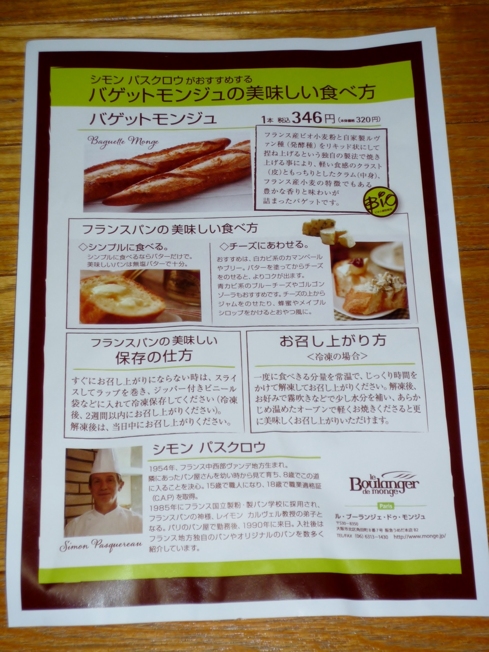 地下のブーランジェリー、モンジュでバケットを買って帰ります。