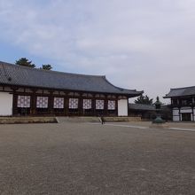 法隆寺西院伽藍の奥に配置された大講堂は、五重塔・金堂・中門・回廊とセットになることで、絶妙のレイアウトになっています。講堂は他の建物に比べて白い部分が多いせいか新しく感じますが、他と同様に古い建造物です。