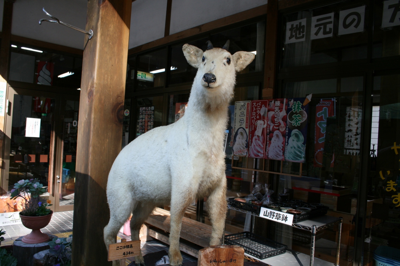出入り口に「かもしか」のはく製があり、出迎えてくれます。