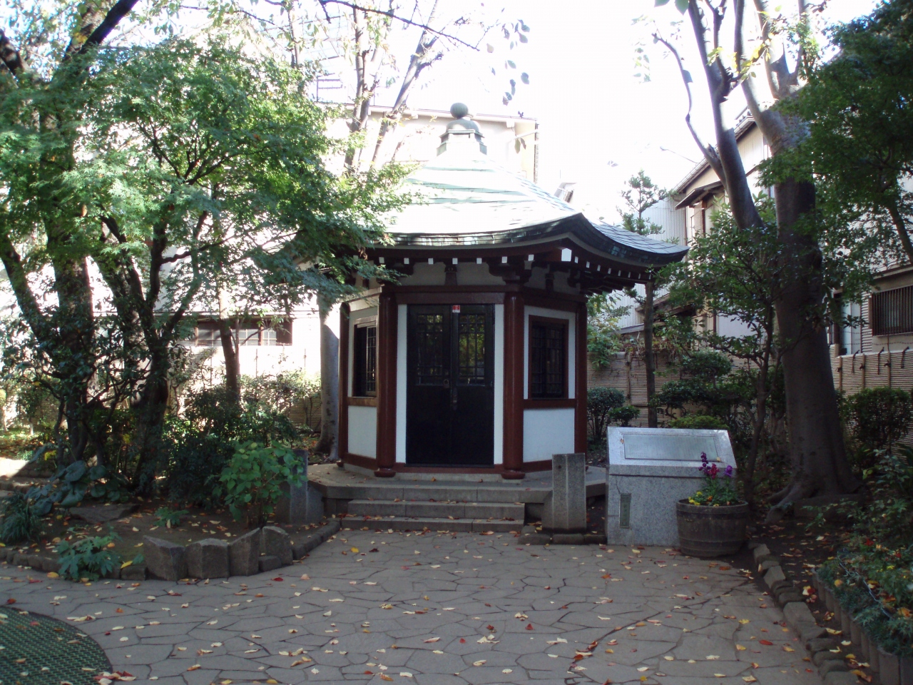 JR日暮里駅から谷中銀座商店街で食べ歩きし左折し谷根千散策していると静かな住宅街に岡倉天心記念公園がありました。園内には岡倉天心を記念した六角堂が建ち、堂内には平櫛田中作の天心坐像が凛々しく安置されています。児童公園の広場もあり、入口にトイレがあり助かります。