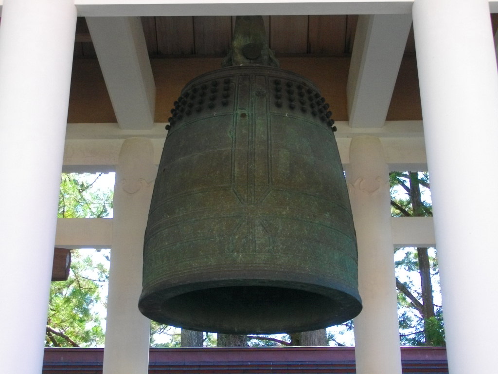 塔やお堂が目立っていますので、あまり注意が行かないと思いますが、こちらも立派な鐘です。今も普通に使われているようで、毎日決まった時間にならされているとのことです。
