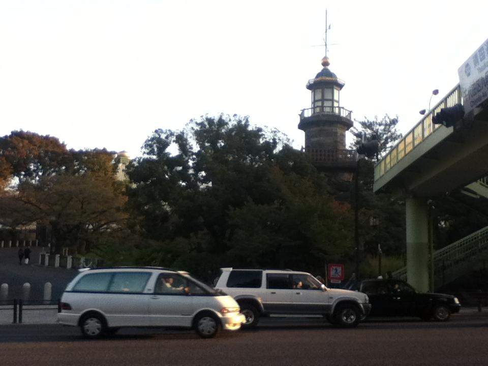 地下鉄九段下駅の西、内堀通りの九段坂の歩道橋の横にある。前の歩道では特に週末は多くの人が通っているが、こちらの高燈篭は高いためか、目を向ける人はなく、静かに立っていた。靖国神社正面の常夜灯として、また祭られた霊のために、明治4年に建設されました。当時は九段坂の上から遠くを見通せ、品川沖を通る船にとっては灯台の役目も果たしたと言われている。昭和5年に、現在の地に移された。近くには、靖国神社や北の丸公園等の観光施設もあり、併せて訪問することをお勧めする。