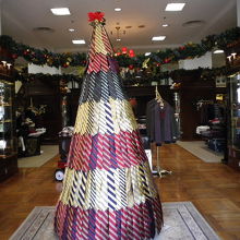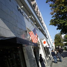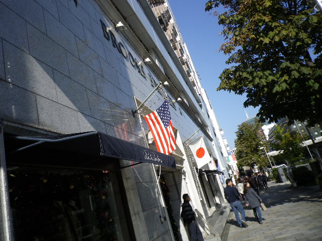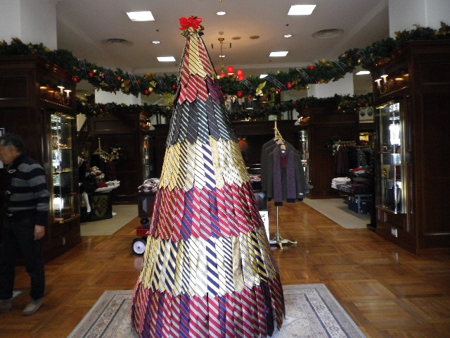 表参道から青山へ向かうと左手に、見えてきます。ブルックスブラザースは、各地のデパートにも店舗を構えており、そう珍しくもありませんが、本店はやはり一味違います。11月のある日に伺うと、クリスマスを意識してか、ネクタイのツリーがありました。