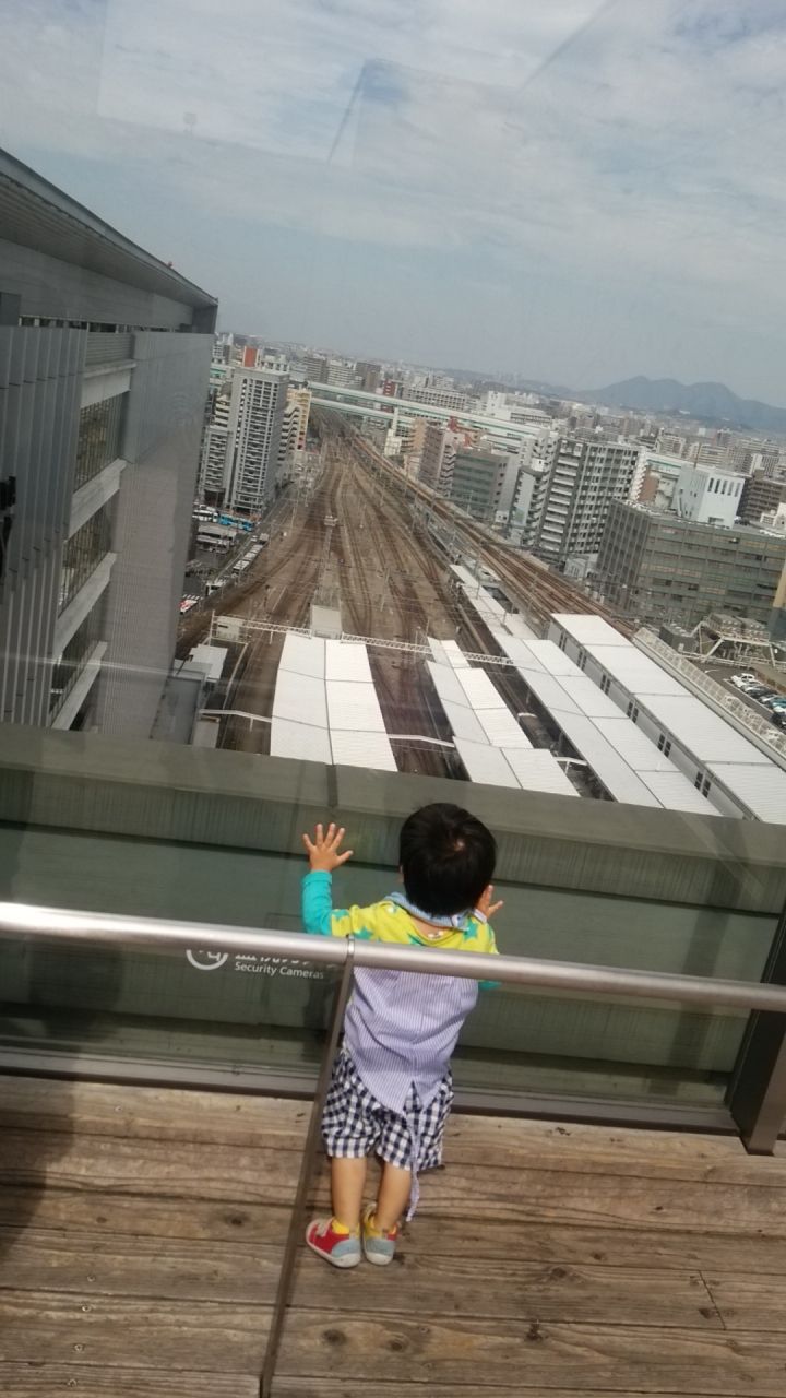 博多駅屋上にある鉄道を祀った神社です。神社のほかにも駄菓子や軽食を売っている出店が並び、ミニSLにも乗ることができます。お勧めは電車と飛行機、バスが同時に見られるビュースポットで、乗り物が好きな子供は喜ぶと思います。