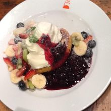 をいただきましたが、フレンチトーストの上にナッツが乗っていて、いろいろな食感が楽しめて、すごく美味しかったです。おやつとして、二人でシェアしてちょうど良い量でした。