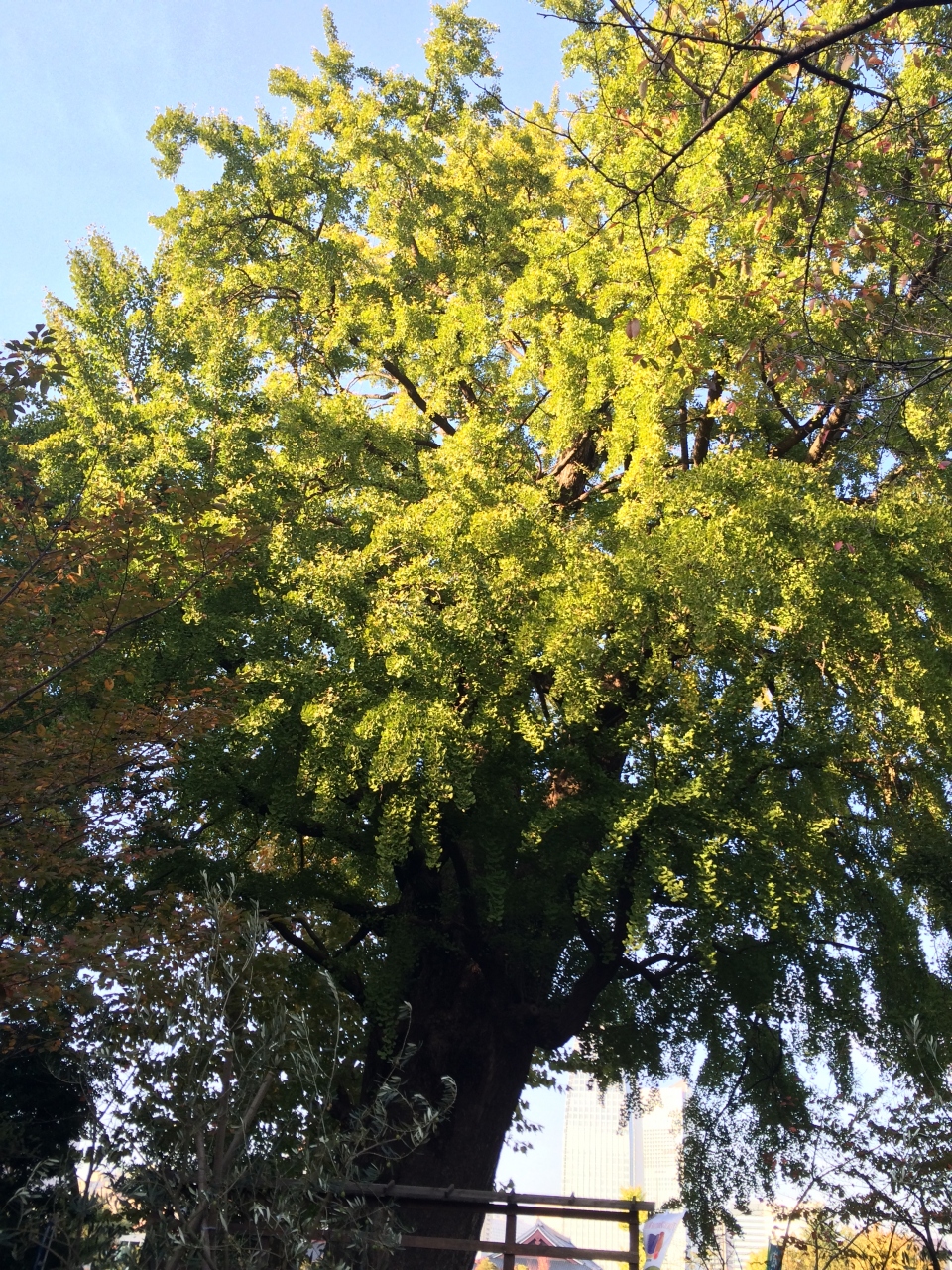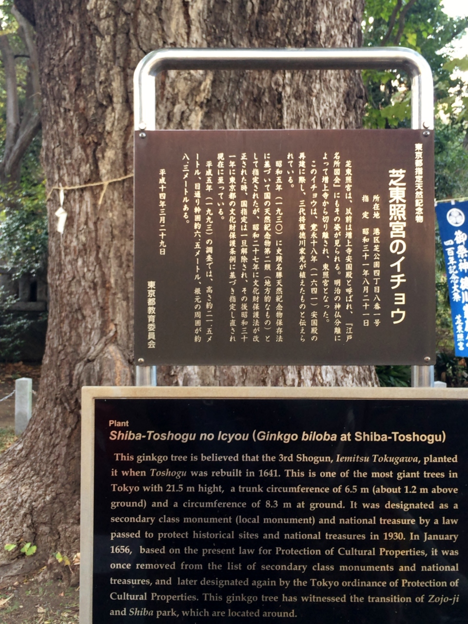 1641年(寛永8年)に増上寺の安国殿を再建した時に、三代将軍徳川家光が植えたものらしい...ということなのでかなりの古木ですが、今では貴重な天然記念物に指定されています。秋には黄色く色付いて奇麗です。
