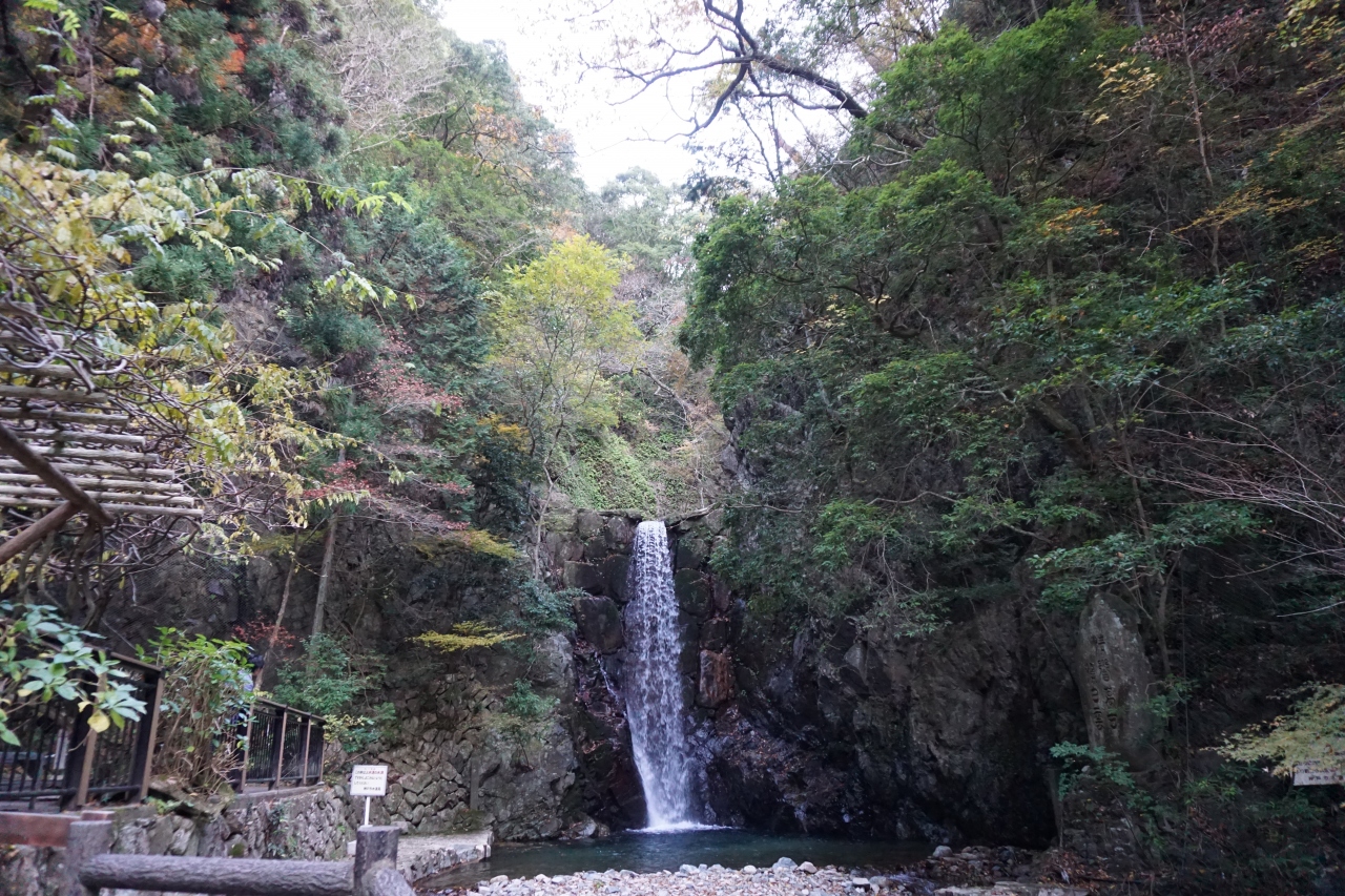 鼓ヶ滝公園は、六甲・有馬ロープーウェイの有馬駅を降りてすぐ。駅の脇の細い道を下って行くと、その先に鼓ヶ滝という高さ8mの直瀑。伊豆の浄蓮の滝を小さくしたような感じで、滝つぼの水の青さが印象的でした。周囲は、川沿いに紅葉の並木道が続いていて、それをしばらく下ると有馬温泉の温泉街に抜けられます。