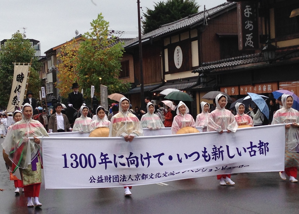 今日は、清水寺から三年坂~二年坂、どんどん北へ歩き円山公園を通って、ここ平安神宮が終点の「祇園祭」を見に来ました。生で観るのは初めてですが、鮮やかな衣装での行列に魅入っていました。小雨の中の行進はご苦労も多かったろうと思います。馬さん達も「うんち」しながらの長時間の行進、お疲れさんでした。来年は晴れるように願っています。是非ご観覧ください。
