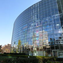 曲面を活かした造りの建物は、晴れた日にはガラス面に景色が反射して美しいです。