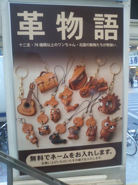 狸小路の一角、一階にはこぶしやというお土産物屋さんがありますが、その二階にあるのがこちらのななかまどさんです。北海道民なら誰でもご存知の、赤平のいたがきさんなどの有名ショップ数店舗の革製品を比較しながら選べる楽しさがあります。個人的にお勧めなのは革で作られた動物さんデザインのキーホルダーで、無料でネームなどの刻印を入れて頂くことも可能です。動物のバリエーションは基本的に北国の動物が多いですが、私のことですからカエルさんはあるかどうか尋ねた所、一種類だけ寂しげな所で売られていました。一つ900円ですので、キーホルダーとしてはちょっと高めかもしれませんが、革ならではの使えば使う程馴染んでくる感じだそうで、ネームを入れてお土産物などにするのもお勧めです。