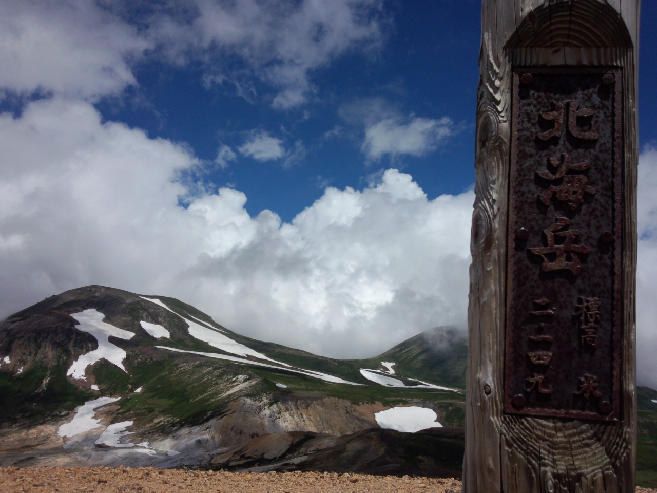 その日は、旭岳から中岳温泉をめぐる一周コースに加えて、白雲岳の季節はずれのゼブラ残雪を見に全長23kmの道のりを一人で。
