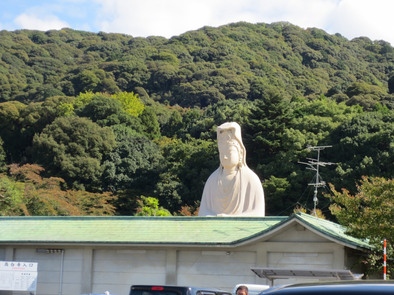 京都東区にあります、大きなコンクリート製の真っ白な観音様が顔をのぞかせています。高台寺と同じ敷地にあり、近づくとその全貌が見られます。入場料は大人200円です。こちらはこの地のシンボルとして京都の街を見渡しているそうです。