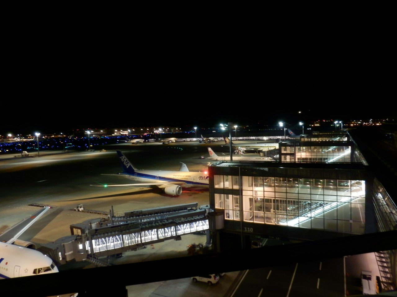 羽田空港の国際線ターミナルにも展望デッキがあります。場所は出発ロビーの奥からエスカレーターに乗って、江戸小路のある4階を越え、5階のTOKYO POP TOWNの奥です。展望デッキは左右にかなり広く、フェンスのちょうど真下が搭乗口のため、間近に飛行機が見られます。また、一段高くなっている場所もあり、東京タワー等も眺められるようになっていました。