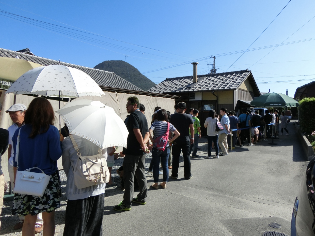 テレビや新聞報道では知っていたが、実際に店に行ってみて驚いた。開店の40分ほど前に着いたのだが、もうすでに30人程の行列ができていた。麺そのものを味わうために“かけうどん”を注文。つゆは関西風で薄味だが、いりこ出汁がしっかり効いていて薬味のおろししょうがと刻みねぎで絶品のうどんでした。