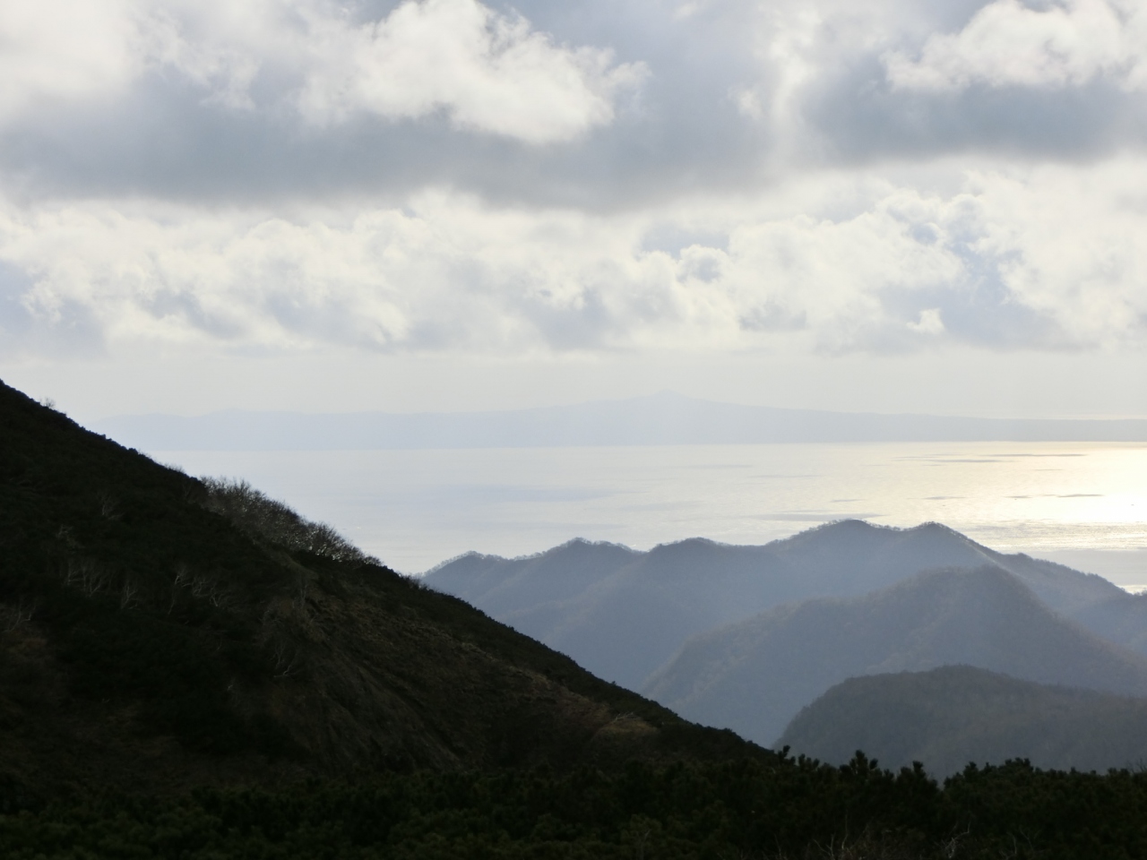 遥か彼方に国後島を望める峠