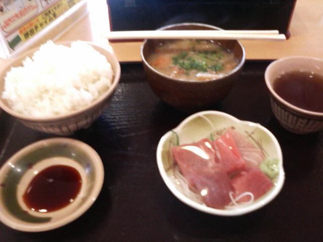 この日はマグロ刺身に豚汁・ご飯とシンプルなメニューを食べましたが、味はまあまあという感じでした。
