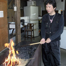 自分で鰹を炙ります