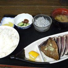 それに、ご飯と味噌汁が付いてきてタタキ定食の出来上がり。