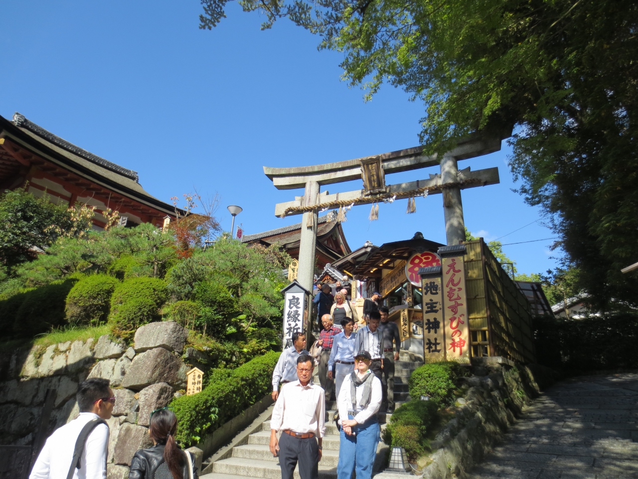 清水寺を300円支払い入って本堂をでたあとすぐにあります。縁結びと書かれていまして、結構な人気を博している神社でした。お清めどころのお酌が工夫されています。ぜひ行ってみてどのお酌でするか選んでみてください。また重要文化財などが入っていて、すごいところでした。