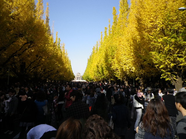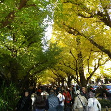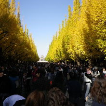 公孫樹並木が有名なスポットです。公孫樹並木だけなら珍しくありませんがここの良い所は、公孫樹のトンネルとなっている点でしょう。道路の左右に公孫樹並木がありますが、その並木が歩道を挟んで二列に植えられています。11月に東京を訪れるならばおすすめしたい場所の一つです。