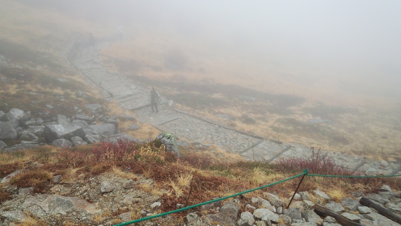 千畳敷ロープウェイ乗り場では視界が10メートルあるかないかの状態。