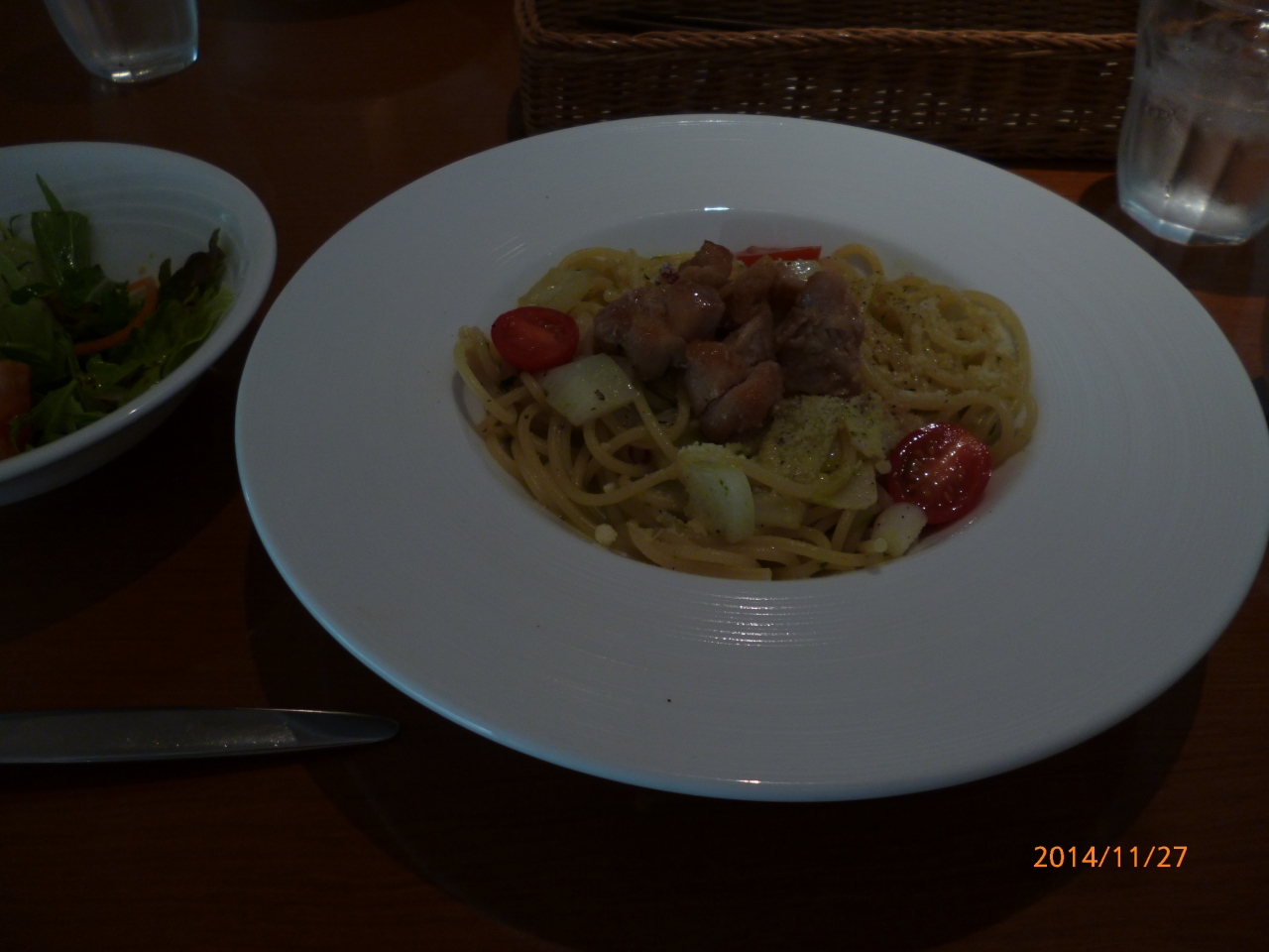 今回はジェのベーゼとかりっとチキンのパスタにサラダ・ドリンク、パフェ(自分で作る。何度でも可)を注文しました。