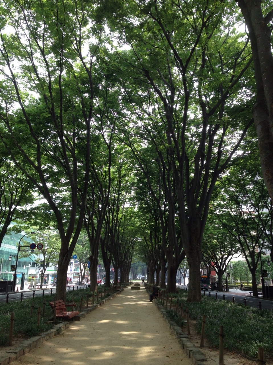 仙台へ行ったらあのケヤキ並木を歩きたい、という事でループル仙台に乗り定禅寺通りへ。中央分離帯が歩道になっているのには想像していなかったのでびっくりしました。