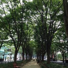 長くケヤキ並木が続いています。所々にベンチがあり休憩ができます。歩道を歩いている人はほとんどいませんでしたが、観光客だし、歩いていきました。