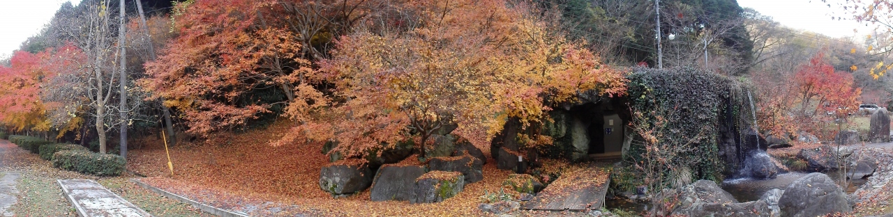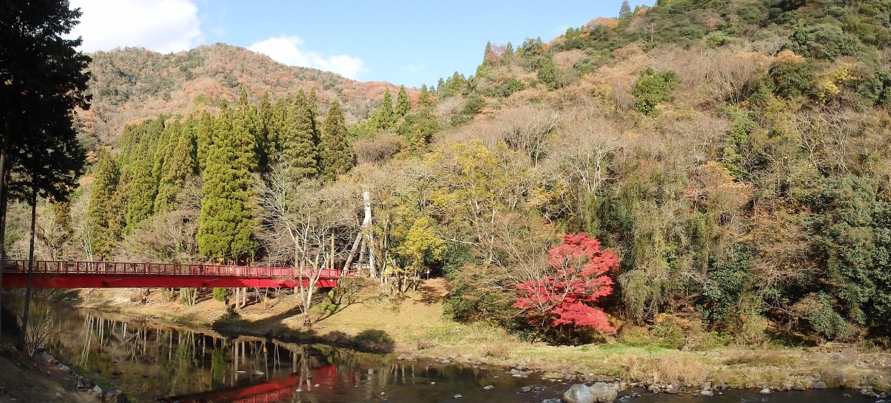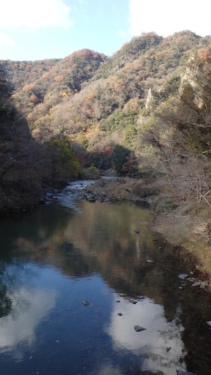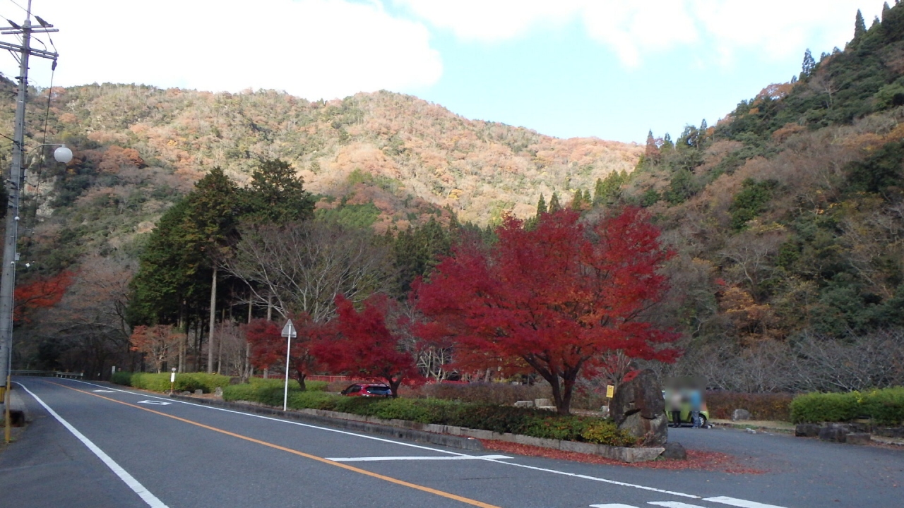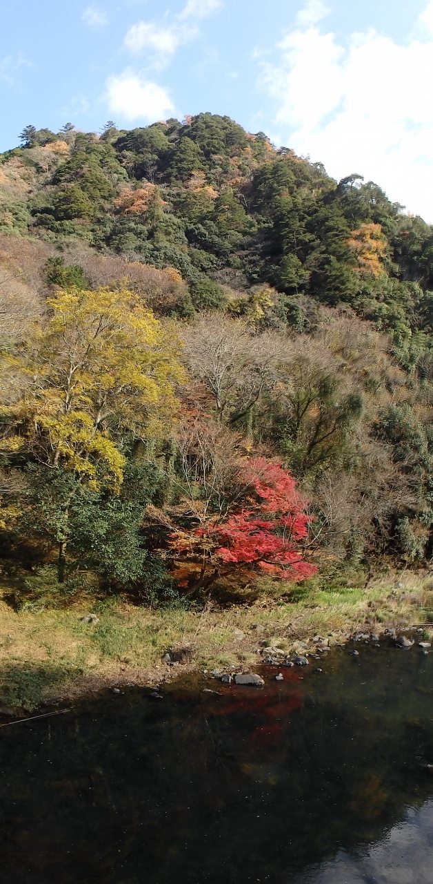 11月の紅葉シーズンには、NHKローカル放送の紅葉情報の1つとしてこの宇甘渓が紹介されています。しかし、訪れた時期がピークを過ぎていたせいか、これは素晴らしいと言えるほどの紅葉はありませんでした。また周囲を見渡してみた限りでも、川沿いや山麓が赤く染まるほどのモミジは生えていないように思いました。