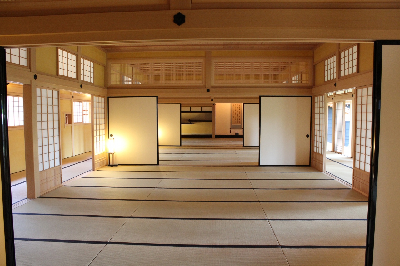 再現ゾーンの最初に現れる四つの部屋畳の数は合わせて72枚だそうです。ふすまの絵柄についての資料が残っていないそうで、真っ白のままです。